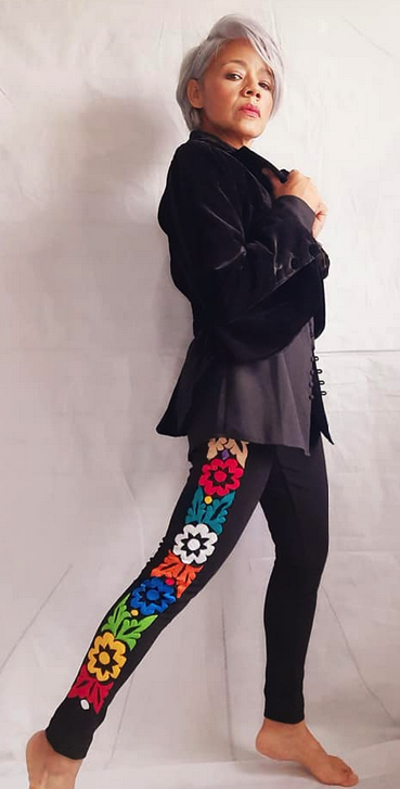 Leggins confeccionados en lycra con xpandex y bordado multicolor a mano.