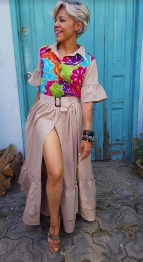 Vestido largo confeccionado en tela híbrida (rayón con expandex). Bordado de Jalapa de Díaz.
