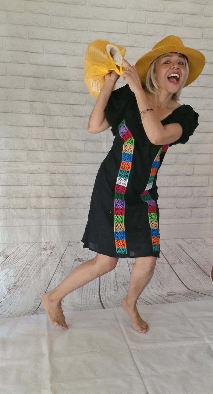 Vestido de confeccionado en algodón corrugado y bordado de Oaxaca.